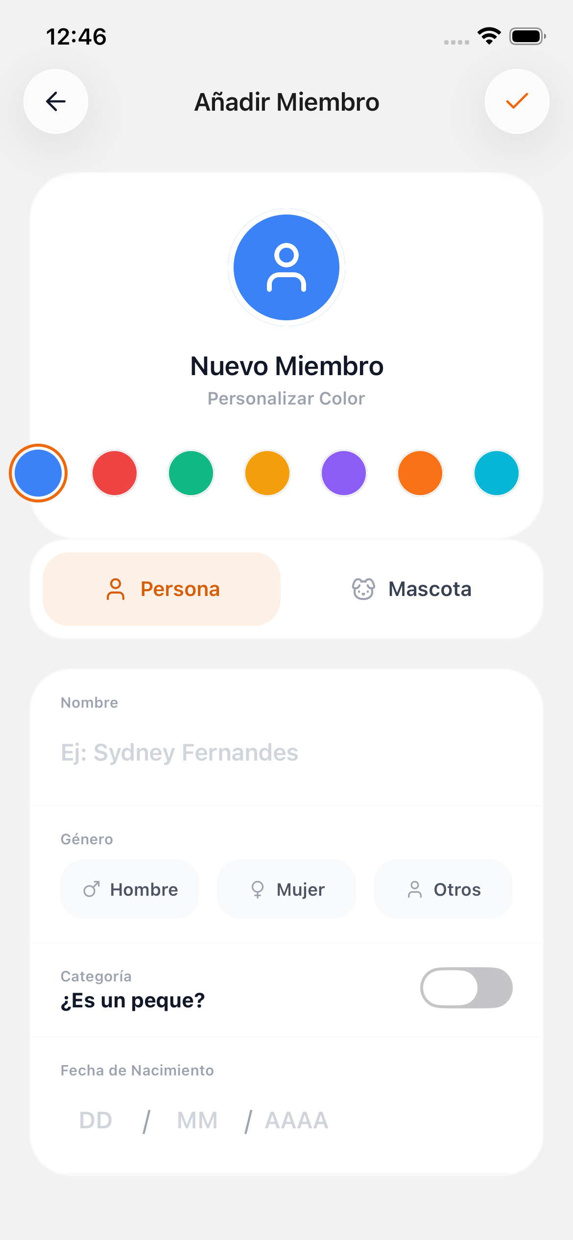 Pantalla de invitar miembro al hogar
