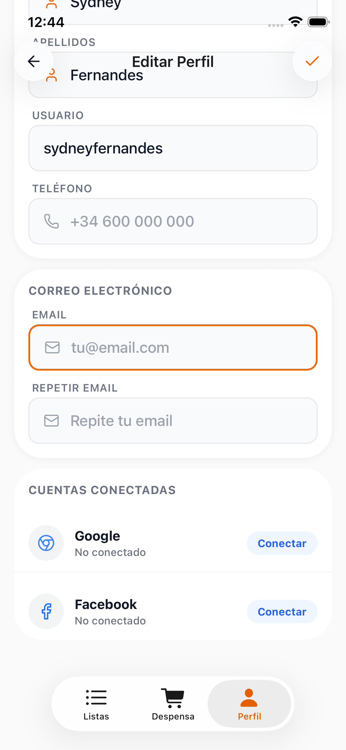 Tu perfil contiene tu información personal. Mantenerlo actualizado mejora tu experiencia en Super Lista.