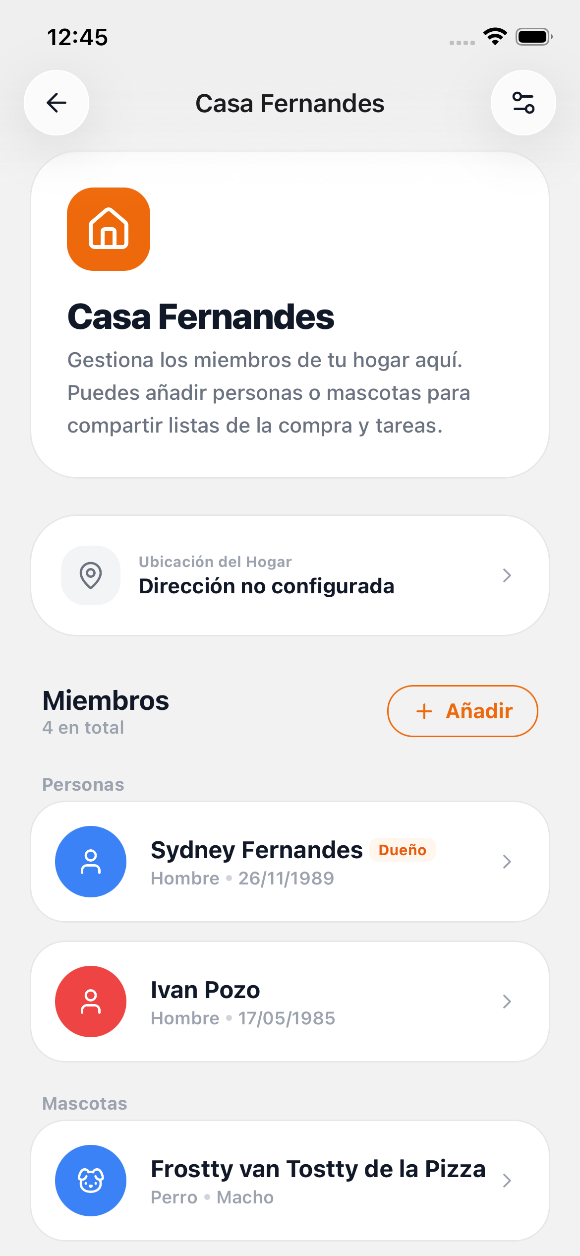 Mantén los datos del hogar actualizados para que todos los miembros lo identifiquen.