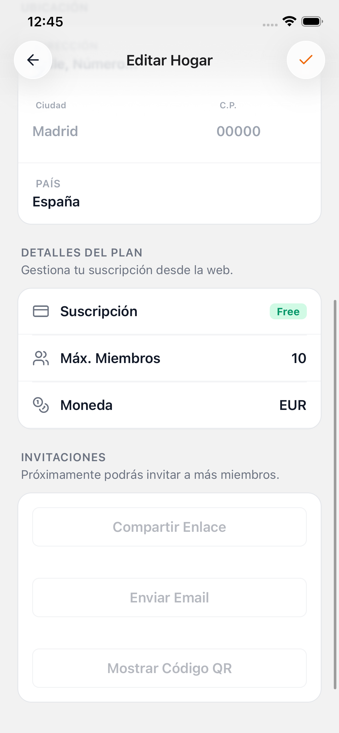 Toca el icono de edición para cambiar el nombre, descripción, ciudad u otros campos de tu hogar.